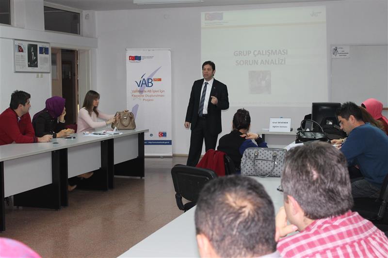 Valiliklerde AB İşleri İçin Kapasite Oluşturulması Projesi kapsamında gerçekleştirilen "Proje Hazırlama Eğitimi" 1. si tamamlandı. 6 farklı kurumdan 22 katılımcı ile 3 gün süren eğitimde Proje Döngüsü Yönetimi örnekler ile katılımcılara anlatıldı.