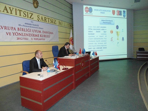 Ankara ili 2012 yılı ikinci AB Uyum, Danışma ve Yönlendirme Kurulu Toplantısı Ankara Vali Yardımcısı Sayın Dr. Şentürk UZUN başkanlığında, Avrupa Birliği Bakanlığı Proje Uygulama Başkanı Sayın Bülent ÖZCAN, Proje Uygulama Başkanlığı temsilcileri ve kurul üyelerinin katılımlarıyla 14 Haziran 2012 tarihinde yapıldı.