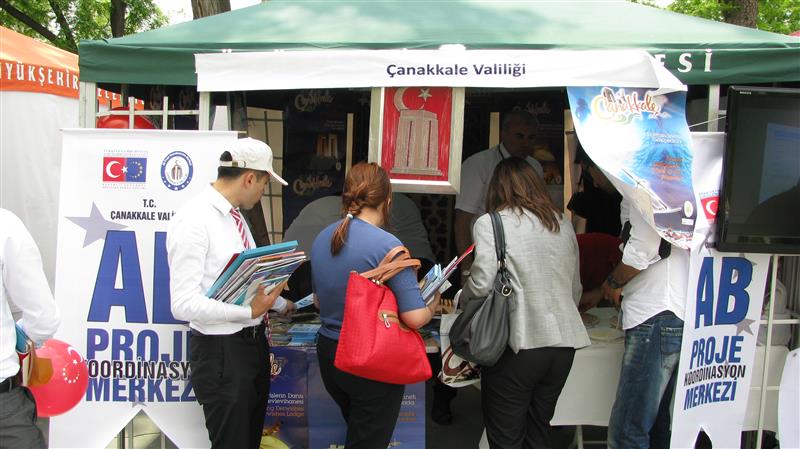 AB Günü Şenliği kapsamında Ankara Gençlik Parkı’nda stant açan Çanakkale Valiliği AB Proje Ofisi görevlileri, ilin kültürünü, tarihini, turistik yerlerini ve projelerini anlatan çok sayıda materyal dağıttı, şenliğe katılanlara bilgi verdi.