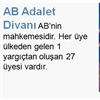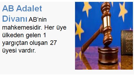 AB Adalet Divanı AB’nin mahkemesidir. Her üye ülkeden gelen 1 yargıçtan oluşan 27 üyesi vardır.