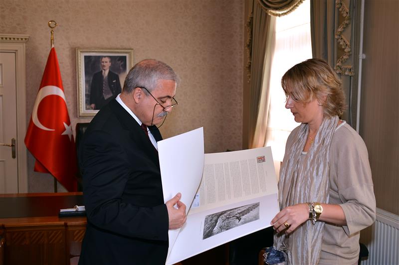 Vali Güvençer heyete Muğla’ya özgü çeşitli hediyeler takdim ederken, AB İlişkileri Genel Müdürü Maria Teresa Gimenez Delgado de Torres ise Castilla La Mancha Bölgesi’ni anlatan fotoğraf albümünü Vali Güvençer’e hediye etti.