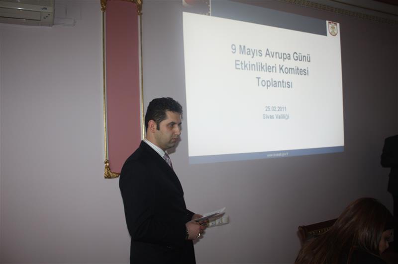 09 Mayıs Avrupa Günü Etkinlik Komitesi, 25 Şubat 2011 Cuma günü Sivas Valisi Ali KOLAT başkanlığında bir araya geldi. Valilik Ahmet Muammer Bey Salonu'nda gerçekleştirilen toplantıya Vali Ali KOLAT'ın yanı sıra Avrupa Birliği İl Daimi Temas Noktası Vali Yardımcısı Veysel ÇİFTÇİ, Belediye Başkan Yardımcısı Ömer Faruk ÇINARGİL, Cumhuriyet Üniversitesi Rektör Yardımcısı Meftuni YEKELER, İl Özel İdaresi Genel Sekreteri Mahmut KAYHAN, İl Planlama ve Koordinasyon Müdürü Gülistan TÜFEKÇİ BAŞARAN, İl Kültür ve Turizm Müdürü Kadir PÜRLÜ, İl Milli Eğitim Müdür Yardımcısı Adem YILDIRIM, TSO Yönetim Kurulu Başkan Vekili Ata ŞAHİN, ORAN Kalkınma Ajansı Uzmanı Ahmet Emin KİLCİ ile Avrupa Birliği Bürosu personeli katıldı.