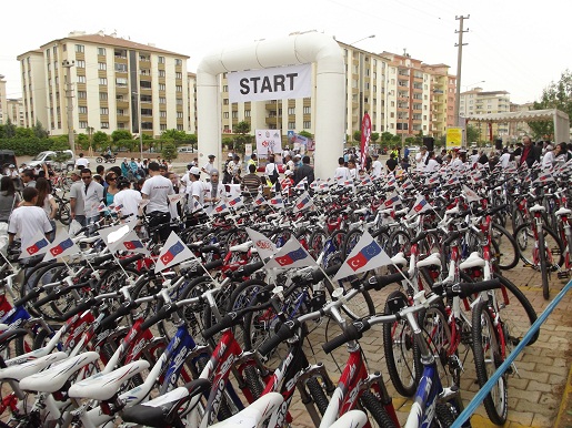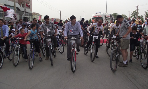 Yarışların bitiminde İl AB Daimi Temas Noktası Vali Yardımcısı Sayın Şükrü ÖZCAN ve protokol üyeleri, yarışçılar ve vatandaşların katılımı ile toplu bisiklet geçişi yapıldı.