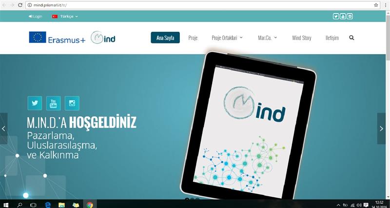 Mesleki Eğitim ve Öğretim Stratejik Ortaklık, Ana Eylem 2 “Yenilik ve İyi Uygulamaların Değişimi için İşbirliği” kapsamında Avrupa Erasmus+ programı tarafından desteklenen M.IN.D. – Marketing, Internationalization & Development (Pazarlama, Uluslarasılaşma ve Kalkınma) No. 2015-1-IT01-KA202-004665 Projesi amaçları: