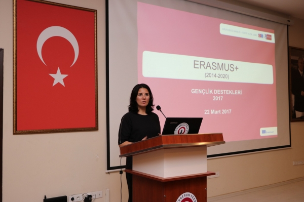 Türkiye Ulusal Ajans Başkanı Mesut Kamiloğlu ise konuşmasına, programın düzenlenmesinde emeği geçenlere teşekkür ederek başladı. Mesut Kamiloğlu Türkiye Ulusal Ajansı olarak 2004 yılından bu yana AB’ye tam üye ülke seviyesinde programlardan faydalanıldığını ifade ederek, temeli 1982 yıllarına dayanan ve Yükseköğretim Öğrenci Hareketliliğini de kapsayan Erasmus’un 2014 yılından itibaren Erasmus+ olarak adlandırıldığını ve çok daha geniş bir kitleye hitap ettiğini kaydetti. Erasmus ve yükseköğretim kapsamındaki gençlik programlarındaki fon imkânlarının kaynakların sınırlı olmasından dolayı proje sürecinden geçtiğini belirten Kamiloğlu, sözlerine şöyle devam etti: “Biz 2004’ten bu yana faaliyette olan bir kuruluşuz, bu güne kadar 110 bin proje başvurusu aldık. 28 bin projeye 900 Milyon Avronun üzerinde bir kaynak aktardık. 2017 yılı sonuna kadar 450 bin vatandaşımızın Avrupa’da eğitim almış, staj görmüş veya gönüllü bir programa katılmış olmasını arzu ediyoruz. Şu ana kadar 400 bini geçmiş durumdayız, yılsonuna kadar da 450 bin hedefine ulaşmayı düşünüyoruz. Türkiye Ulusal Ajansı olarak yılda 10 bin proje ile finansman bakımından ilk 5’te, proje başvurusu bakımından ilk sıradayız. Avrupa Birliği (AB) Gençlik programları birbirinden öğrenmeyi öğretiyor. Bize benzemeyen insanlardan bir şeyler öğrenmeyi öğretiyor. Farklı coğrafyalardan kültürlerden farklı okullardan gelen insanların bir arada çalıştığı bir süreç... Erasmus+ altındaki faaliyetlerin çok büyük bir kısmı bize benzemeyen insanlarla ortak bir şeyler yapabilme ve bundan bir şey öğrenebilme üzerine kurgulanmıştır”. 2009’da yaşanan küresel ekonomik krizin Erasmus+’ın geleceğini şekillendirdiğini vurgulayan Mesut Kamiloğlu, artan genç işsiz nüfus oranıyla birlikte yükseköğretimden sonraki hayatın da sorgulandığını söyledi. Üniversiteden mezun olan kitlenin iş dünyasının beklediği potansiyelde olmadığını kaydeden Kamiloğlu, bunun sadece Türkiye’de değil bütün Avrupa’da hatta tüm dünyada bir sorun haline geldiğinin altını çizdi. Kamiloğlu sözlerini; “İşte Erasmus+ buna odaklandı. Program olarak gençlerin bilgi ve becerisini nasıl artırmalıyız ki piyasanın istediği potansiyele ulaşsın. Bu yüzden Erasmus+ projelerinin hemen hepsinin bir tarafında istihdam boyutu ve belli alanlardaki bilgi beceri ve yeteneklerinizin geliştirilmesi vardır” diyerek noktaladı.