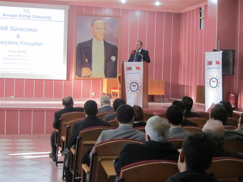 "Avrupa Birliği Yolunda Kırıkkale" projesi kapsamında Kırıkkale Valiliği tarafından düzenlenen "Avrupa Birliği Bilgilendirme Günleri: Avrupa Birliği Eğitim ve Kültür Politikası Konferansı" 25 Kasım 2011 tarihinde gerçekleştirilmiştir. Kamu kurumu personeli, Üniversitenin ilgili bölümlerindeki personel ve öğrencileri, ve STK temsilcilerinin katıldığı konferansın açılış konuşmasını İl AB Daimi Temas Noktası Vali Yardımcısı Sayın Mustafa YILMAZ yapmıştır. Konferansta Avrupa Birliği Bakanlığı Sosyal, Bölgesel ve Yenilikçi Politikalar Başkanlığı AB İşleri Uzman Yardımcısı Sayın Arzu AKAR Avrupa Birliği Eğitim ve Kültür Politikası hakkında bir sunum yapmıştır.