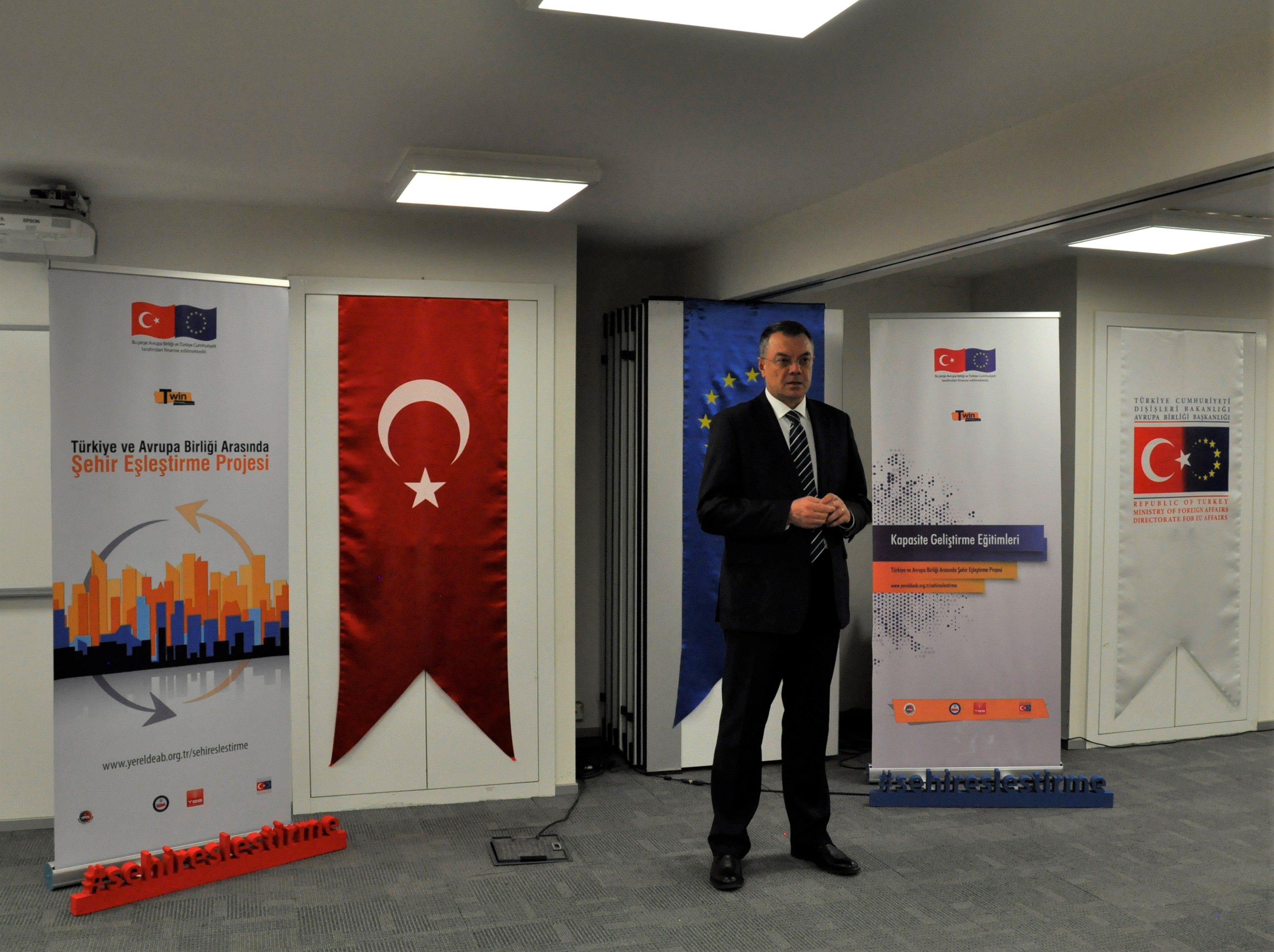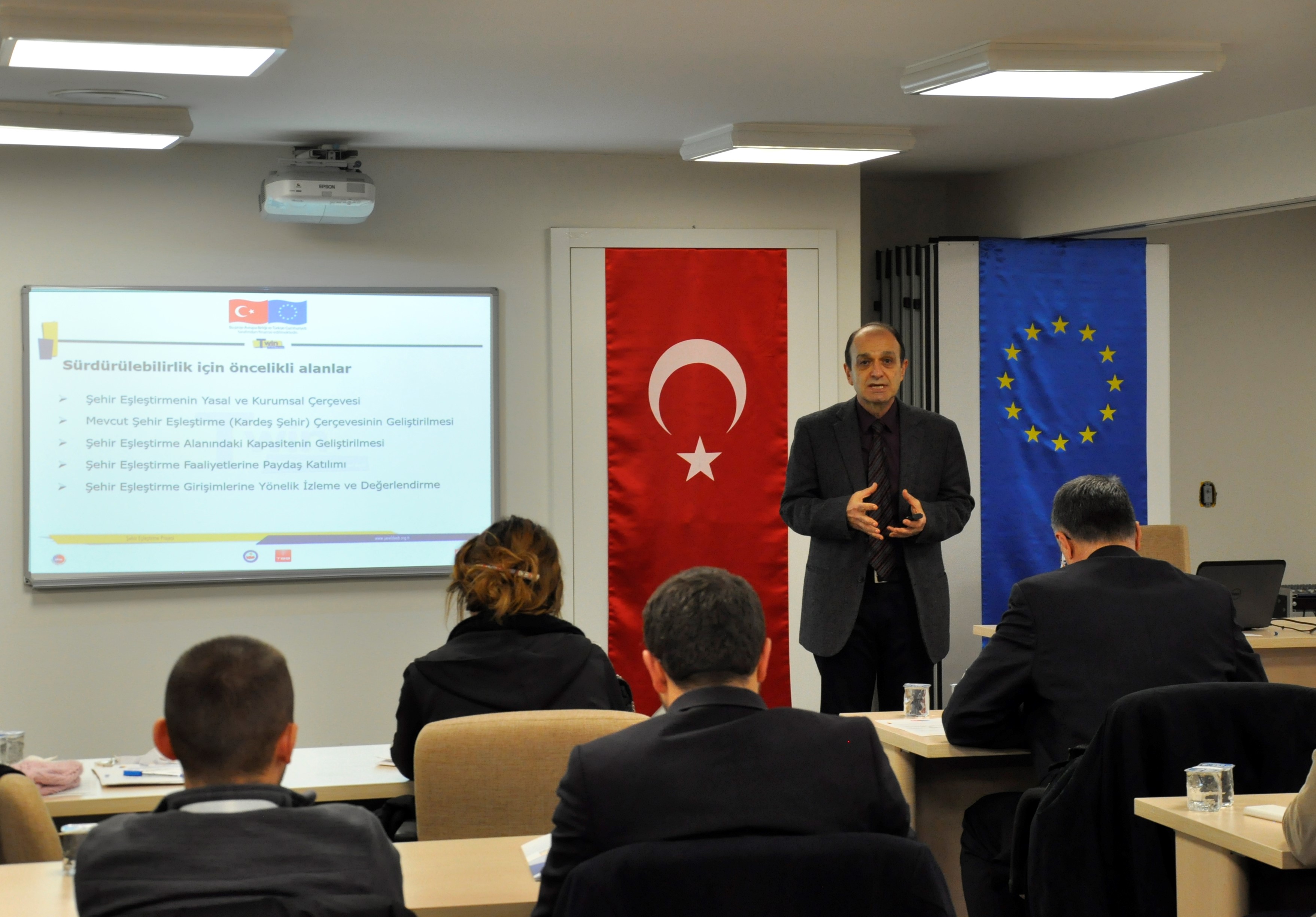 Framework presentation of the Project was made after the opening speeches on the first day of Capacity Building Training in the Field of Town Twinning. Also, Prof. Birgül Demirtaş presented the “Institutional framework of Town Twinning”. In the afternoon session, Mr. Fikret Toksöz informed the participants about mutual values among local authorities in Turkey and the EU countries and about major institutions such as the Committee of Regions (CoR) ad the Council of European Municipalities and Regions (CEMR). Moreover, Mr. Toksöz presented an overview of the institutional and legal framework of town twinning in Turkey.