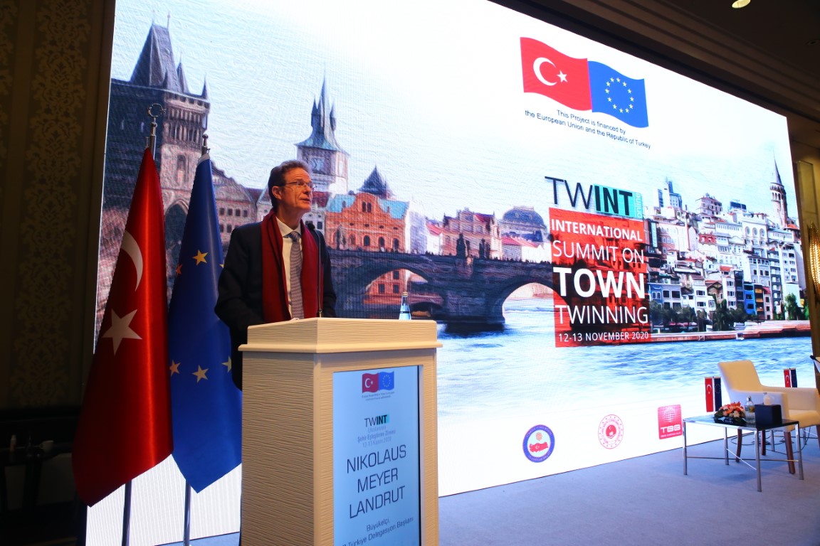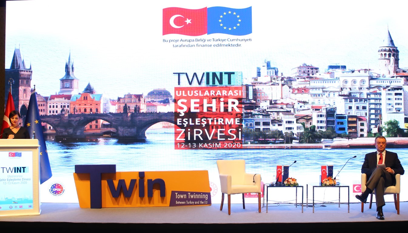 The online International Town Twinning Summit (TWINT Online) was held on 12-13 November 2020 within the scope of the “Town Twinning between Turkey and the EU” (TWIN) Project. Opening speeches for the event were delivered by the Gaziantep Metropolitan Municipality Mayor and President of the Union of Municipalities of Turkey Ms. Fatma Şahin, the President of the Council of European Municipalities and Regions (CEMR) and Vice President of the Congress of the Local and Regional Authorities of the Council of Europe Mr. Anders Knape, Chairman of the Local Administration Policies Council, Presidency of the Republic of Turkey Prof. Dr. Mr. Şükrü Karatepe, Head of the Delegation of European Union to Turkey Ambassador Mr. Nikolaus Meyer-Landrut and Deputy Minister of Foreign Affairs & Director for EU Affairs, Ambassador Mr. Faruk Kaymakcı.
